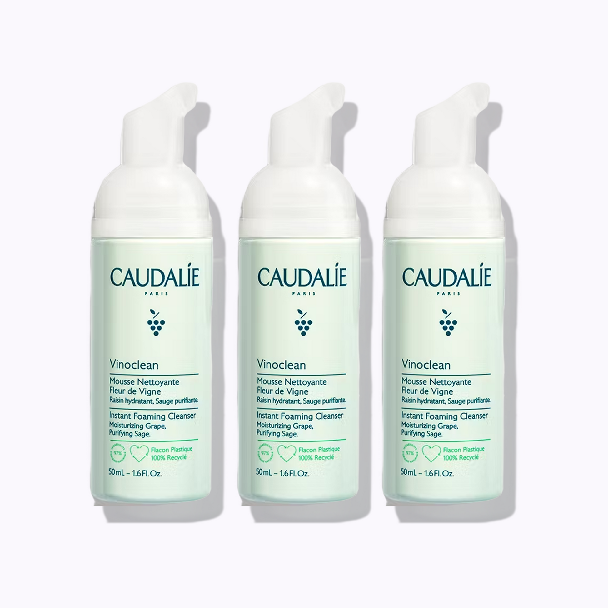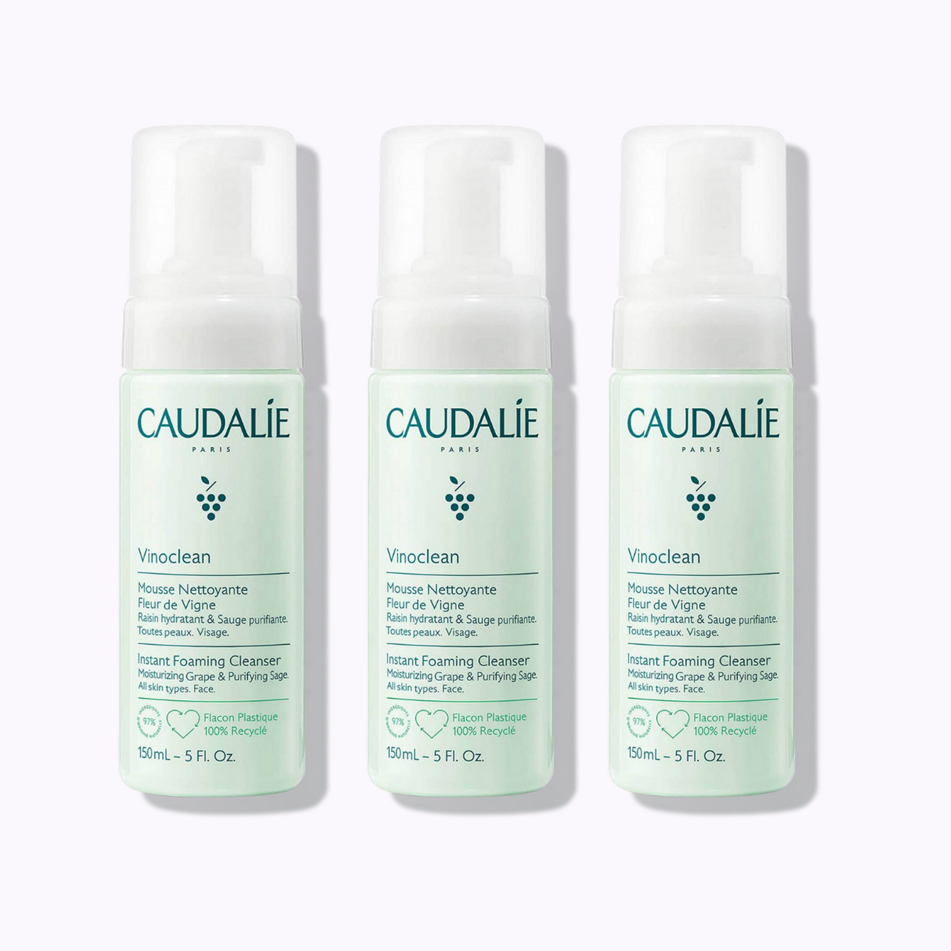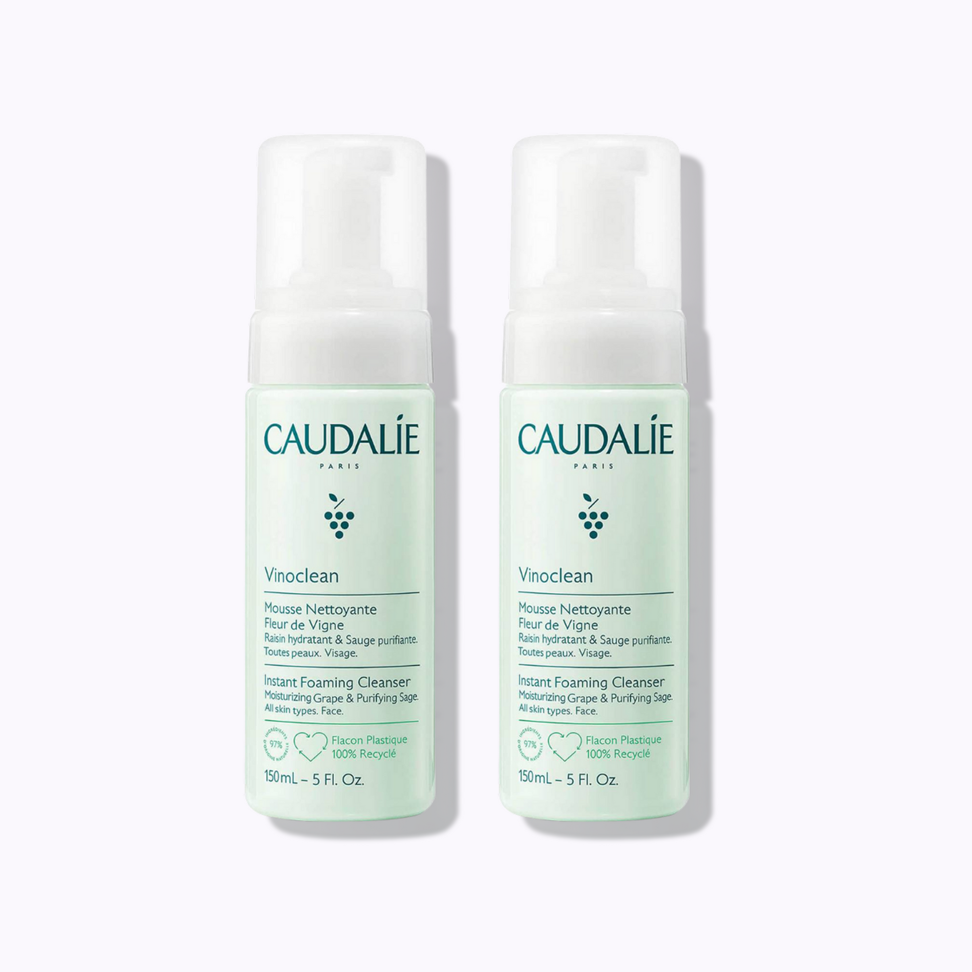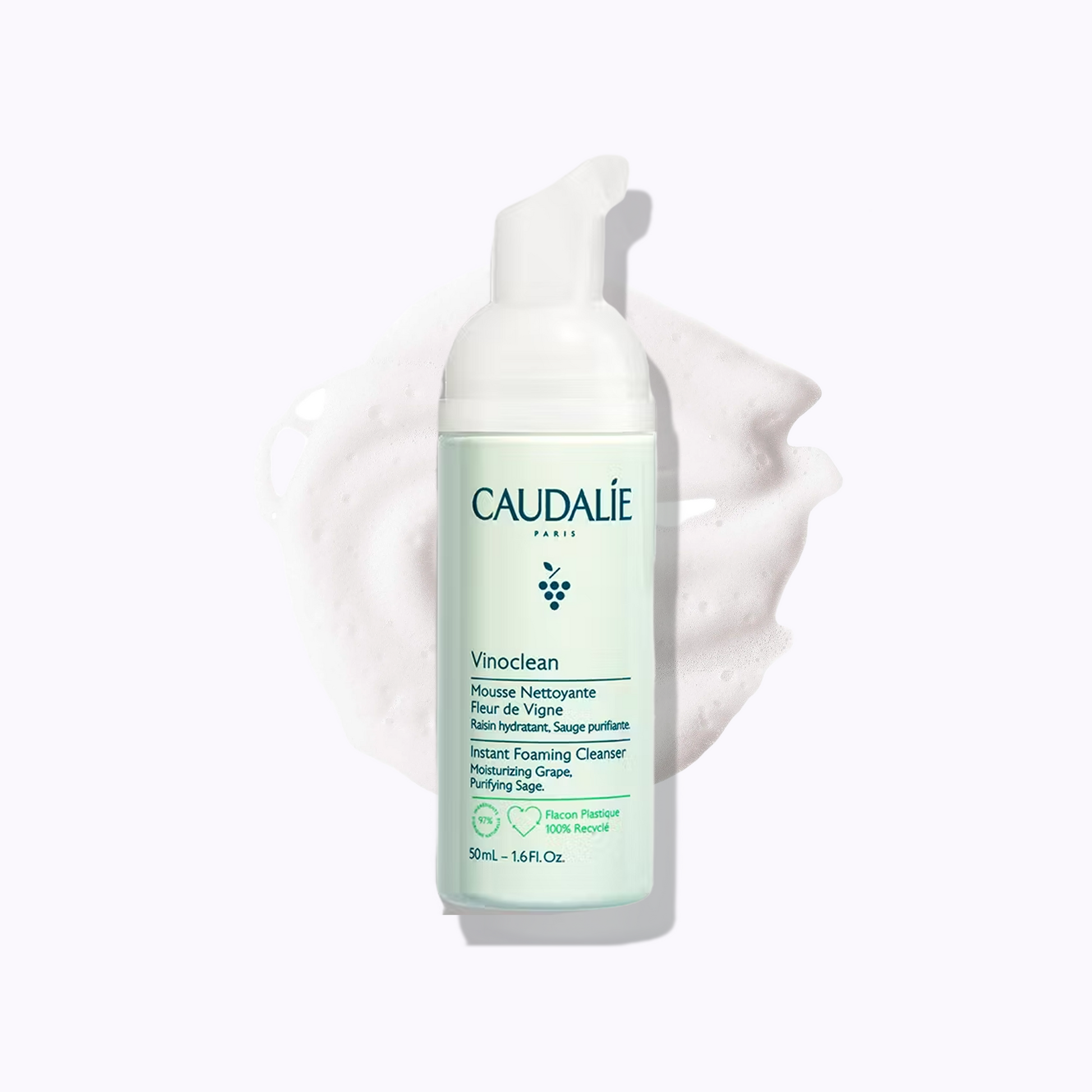 The Caudalie Vinoclean Gentle Foaming Cleanser is a soap- and sulfate-free, vegan foaming cleanser crafted with 97% natural origin ingredients. It transforms from a clear lotion into a soft, airy foam that purifies skin without stripping its natural barrier. Infused with antioxidant grape water, purifying sage extract, and soothing chamomile, this refillable cleanser helps gently remove makeup and impurities while providing hydration, calmness, and radiance to all skin types, including sensitive skin.