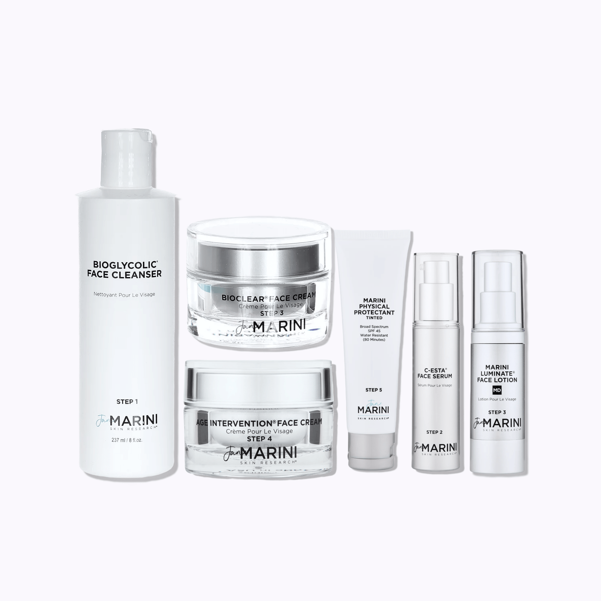 Hydrate and nourish your skin with the Age Intervention® Face Cream, featuring a blend of peptides and antioxidants to reduce the visible signs of aging and restore skin vitality. Finally, protect your skin from environmental damage with the Marini Physical Protectant Tinted SPF 45, a mineral-based sunscreen that provides broad-spectrum UV protection while imparting a sheer tint to enhance your skin's natural radiance.