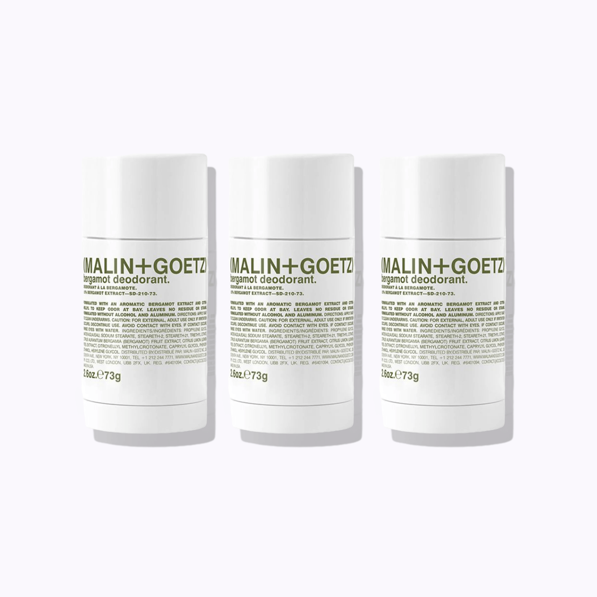 The MALIN+GOETZ Bergamot Deodorant is a clean, aluminum-free deodorant that provides effective odor protection while keeping skin comfortable and fresh. Formulated with probiotic enzymes and corn starch, it naturally neutralizes odor and absorbs excess moisture without clogging pores or disrupting the body’s natural perspiration process. Gentle yet powerful, it glides on smoothly and leaves no residue or irritation. Lightly scented with the brand’s signature bright, citrusy bergamot fragrance, it delivers a refreshing, energizing scent that lasts all day. Suitable for all skin types, including sensitive skin, this deodorant offers a modern, natural approach to daily freshness.