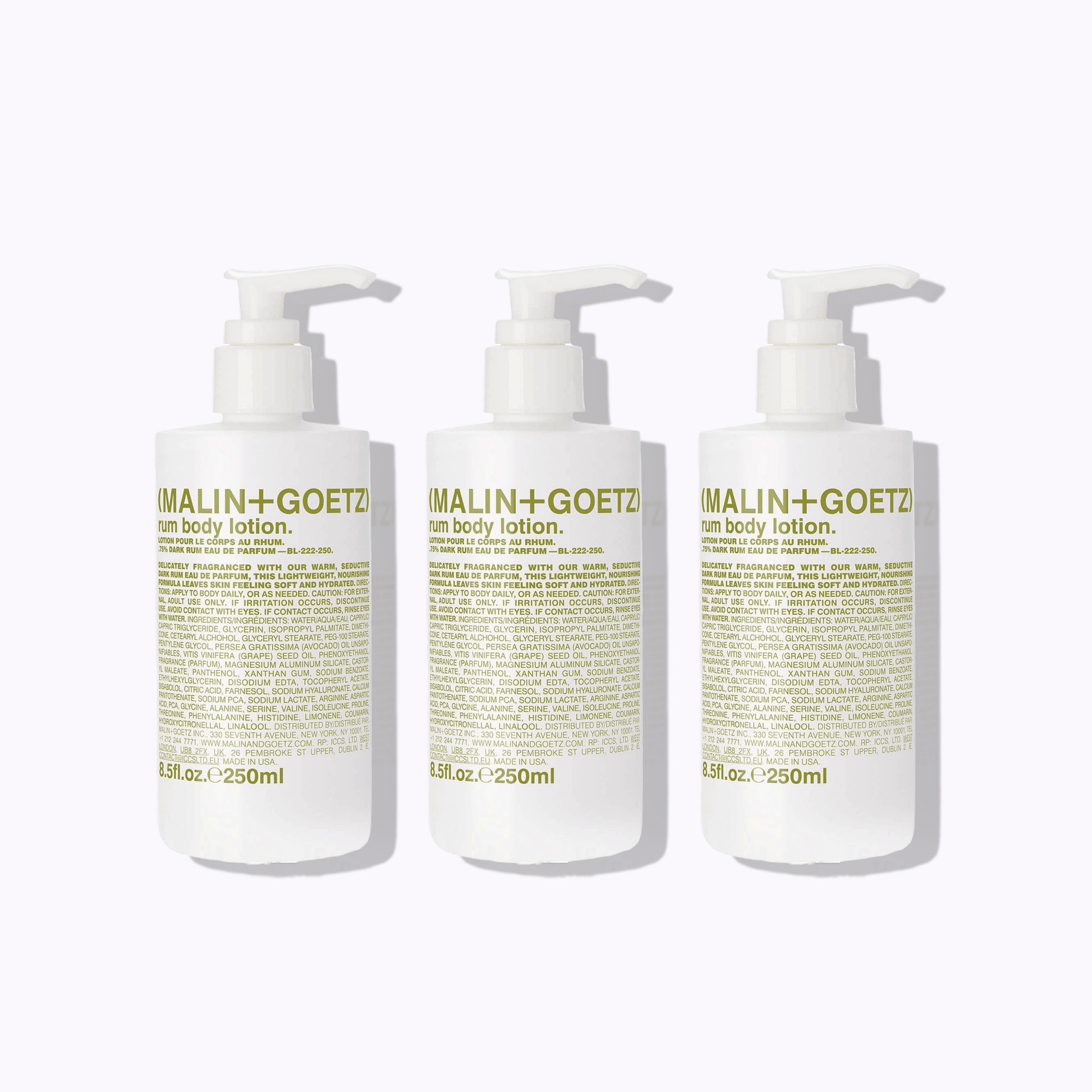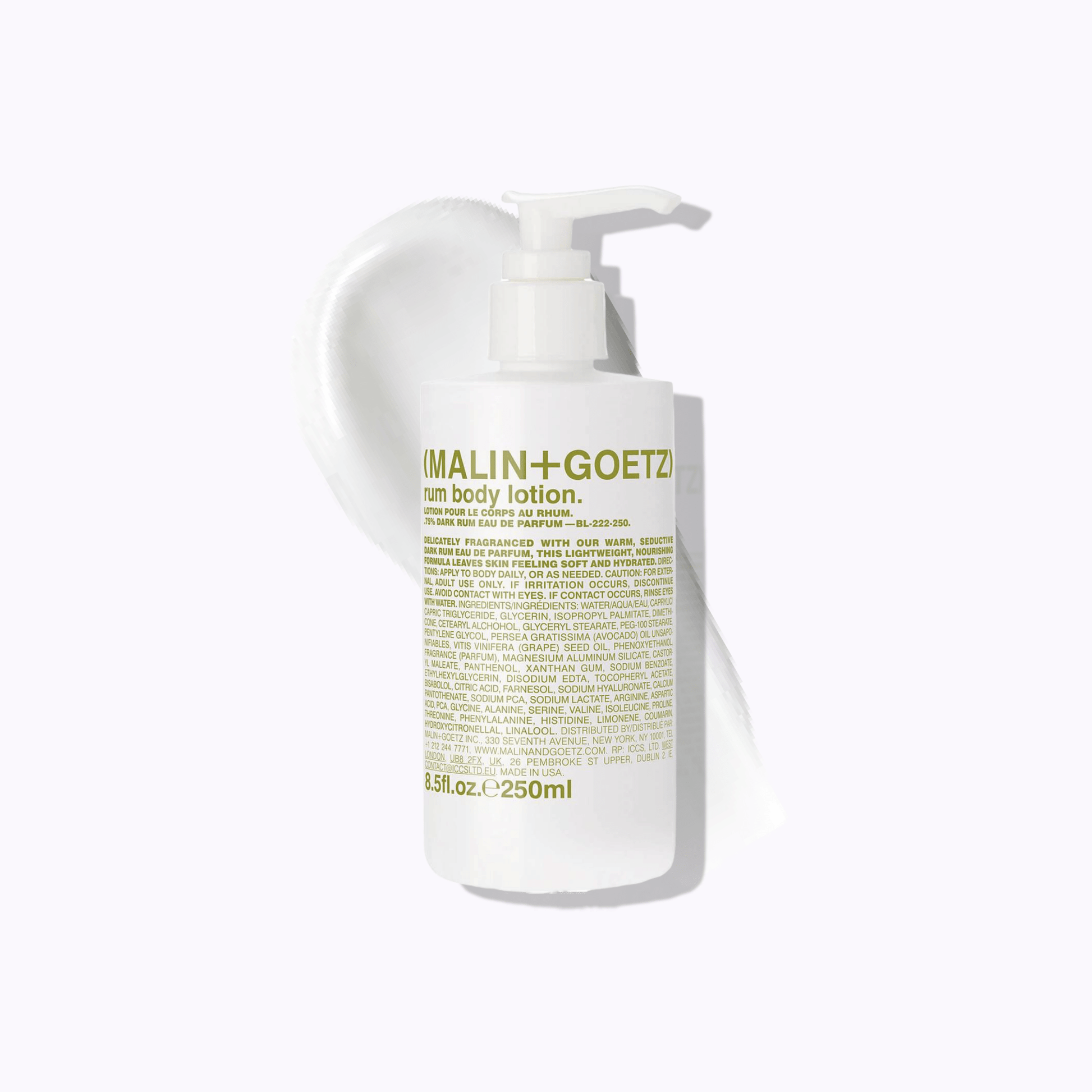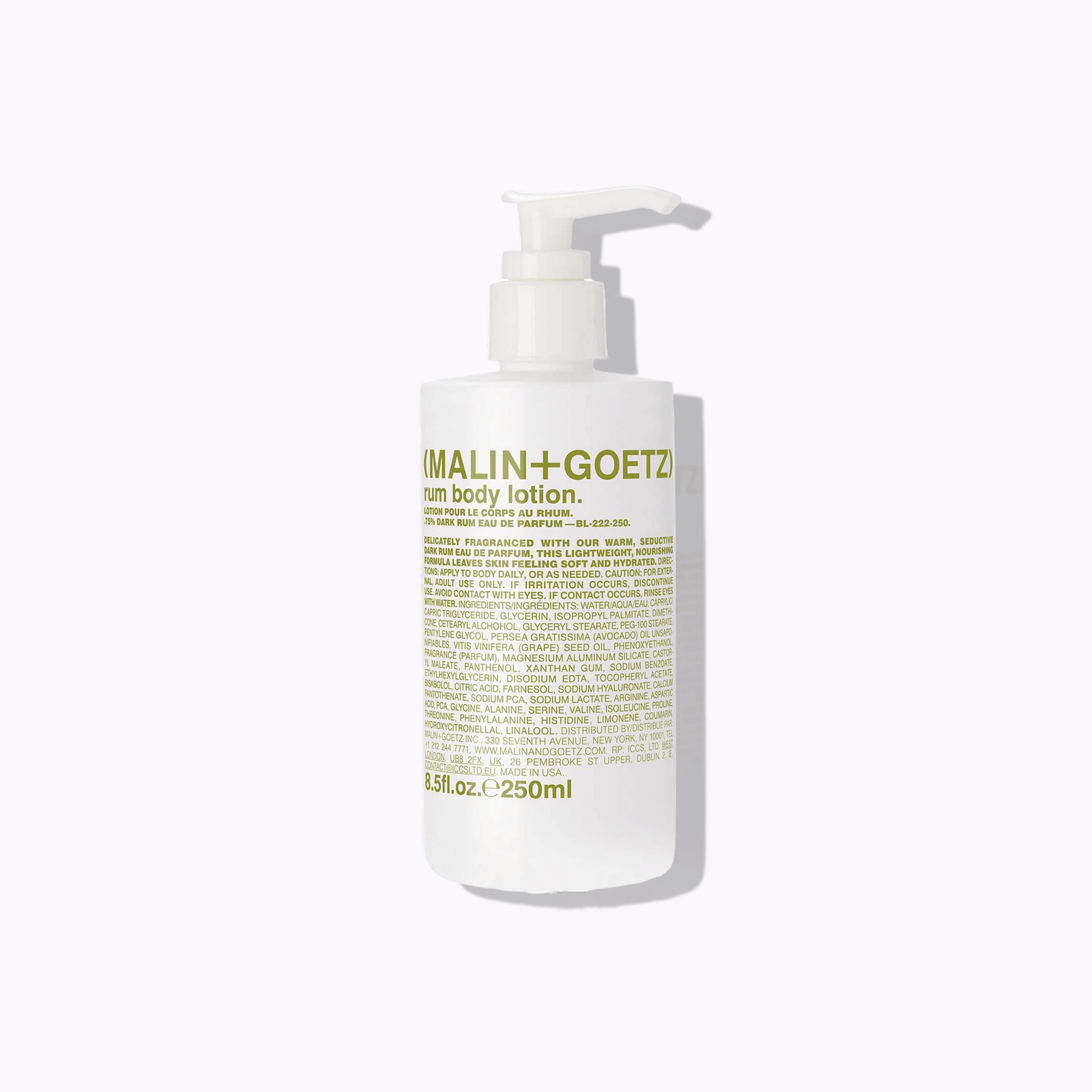 The MALIN+GOETZ Rum Body Lotion is a lightweight yet deeply nourishing moisturizer that hydrates and soothes the skin while leaving behind the brand’s iconic warm rum scent. Infused with vitamin B5, shea butter, and fatty acids, it absorbs quickly to replenish moisture, restore softness, and improve skin texture without any greasy residue. The warm, spicy-sweet fragrance of dark rum lingers subtly on the skin, offering a comforting, sensual finish that makes everyday hydration feel luxurious. Perfect for all skin types, this fast-absorbing lotion delivers long-lasting hydration and a smooth, healthy glow.